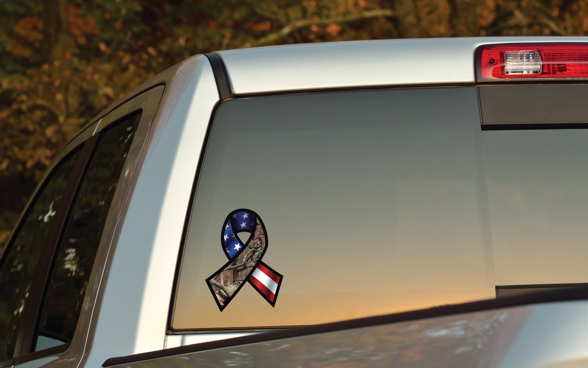 Show your support for our troops with this 6" x 8" Mossy Oak Ribbon Break-Up Infinity pattern and USA flag window decal. Mossy Oak Graphics provides the highest quality automotive grade decals anywhere.